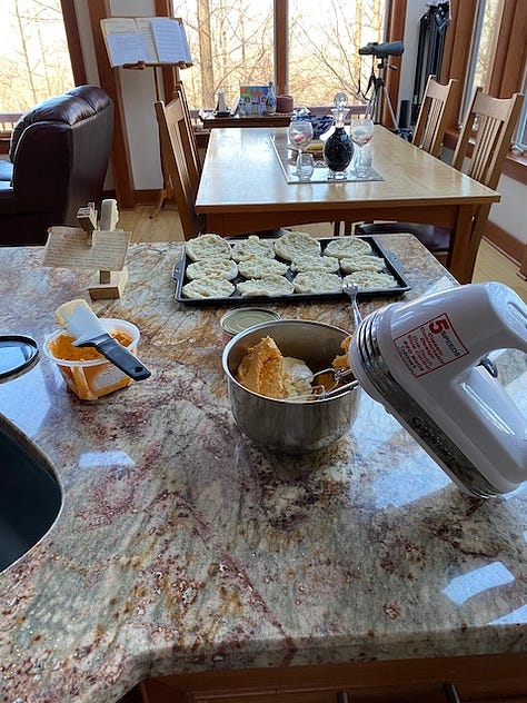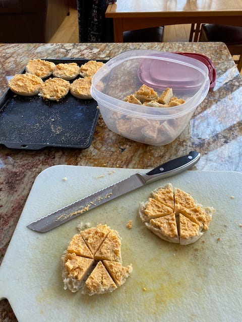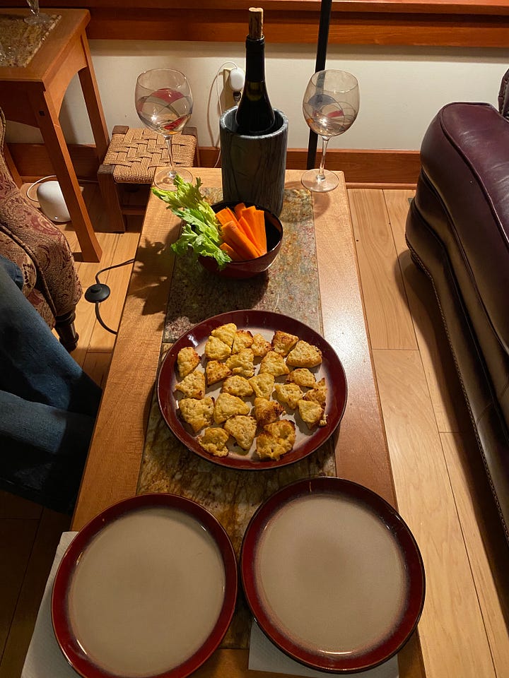 “Crabbies,” tonight’s Friday Happy Hour treat along with a predictably good Sancerre with carrot and celery sticks on a wintry night at #vanaprastha. Stories and recipe on my Substack tomorrow.