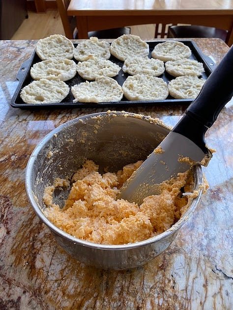 Note: I’ve always been able to find Kraft’s Old English Cheese, but not this time. So, an experiment. The result was okay, not as good. Goes that way sometimes.