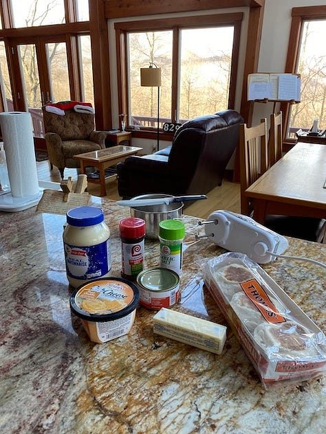 Last Friday’s snow was followed by Monday’s storm and another 4” of snow then a period of rain on Wednesday late afternoon and freezing cold. Schools closed. Keith and I stayed in most of the week but celebrated Friday Happy Hour as usual, this time with a recipe from Mrs. Taffel, my mother’s best friend who saved me, as you’ll read in Wisdom Builds Her House.